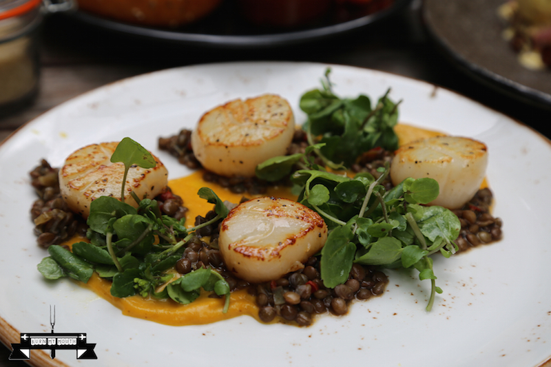 Pan Seared Scallops with French Lentils, Japanese Pumpkin Puree and Watercress $19