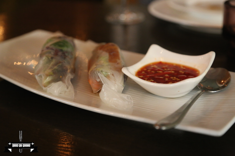 Starter – Fresh rolls Duck – Rice paper roll, roasted duck, vegetable, carrot, tofu, served with sauce