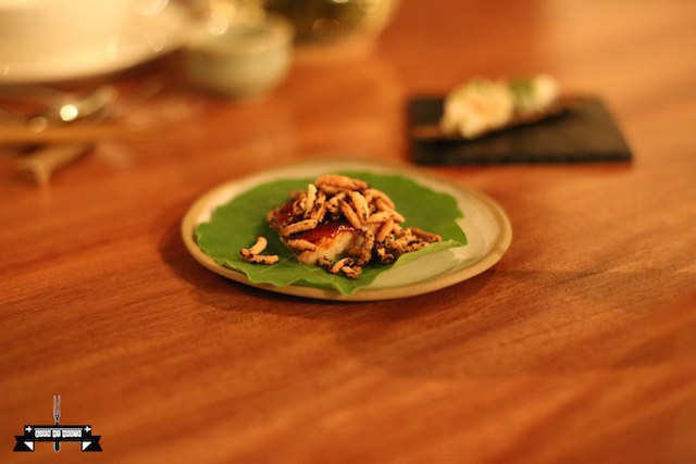 This dish was fantastic. There was a contrast of flavours in this dish – the smokiness and saltiness of the eel contrasted well with the freshness and softness of the leaf, while the rice had a crunchy, smoky and a little spicy flavour. This was a very elegant and modern take of a traditional Korean dish.