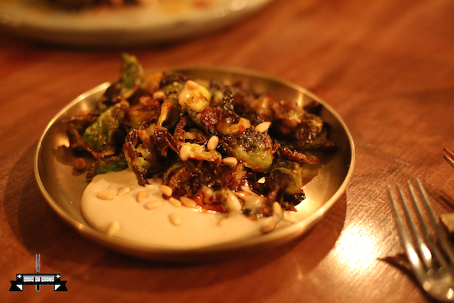 Brussels sprout, kimchi seasoning, pinenut ($8)